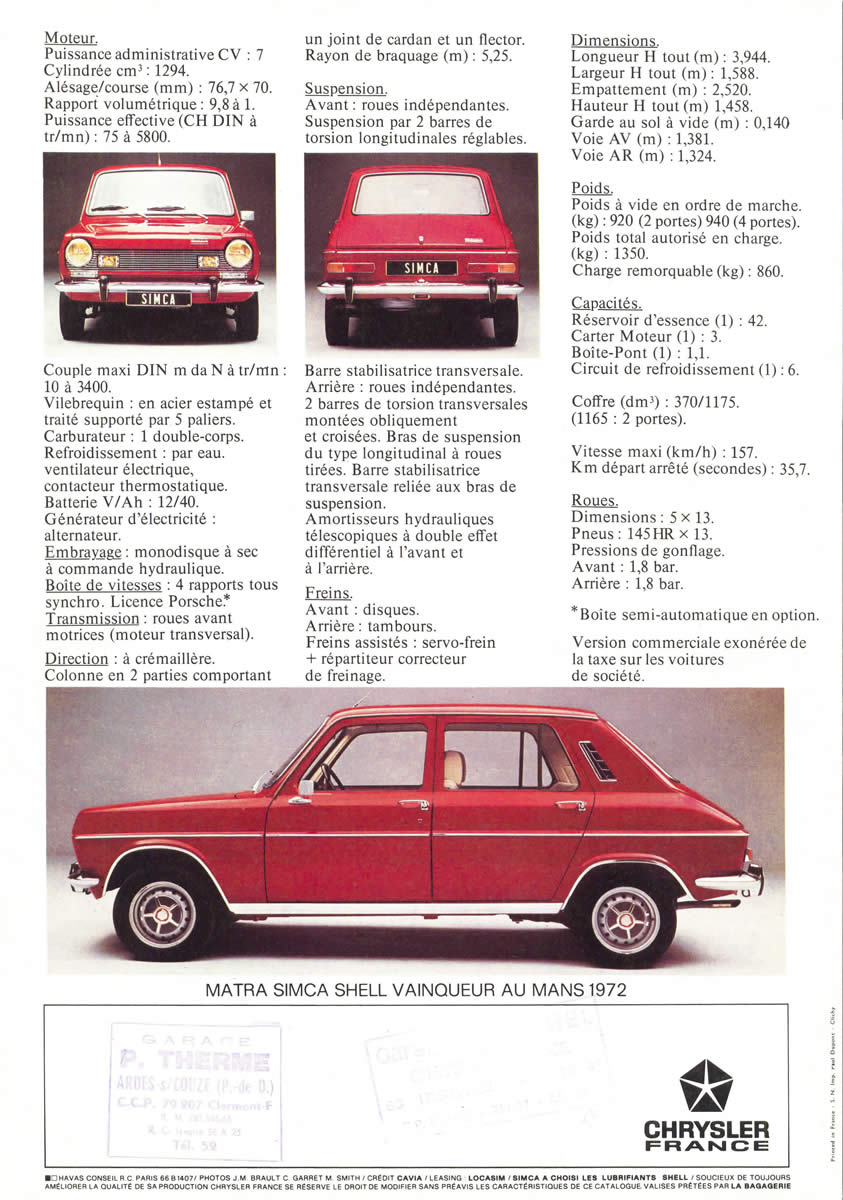 Simca 1100 Special brochure - 1973 - French (collection Laurent Gailliard)